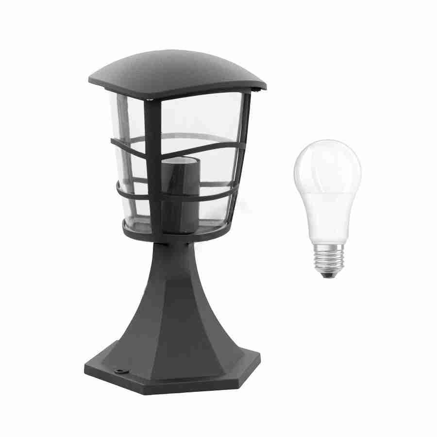 Eglo Lighting Aloria single light outdoor post light features a circular base and tapered stem holding a lantern style lamp head in black finish and clear acrylic panels.This stylish bollard light is modern in design and respectful to traditional style but with a modern twist, therefore suiting any style of house.