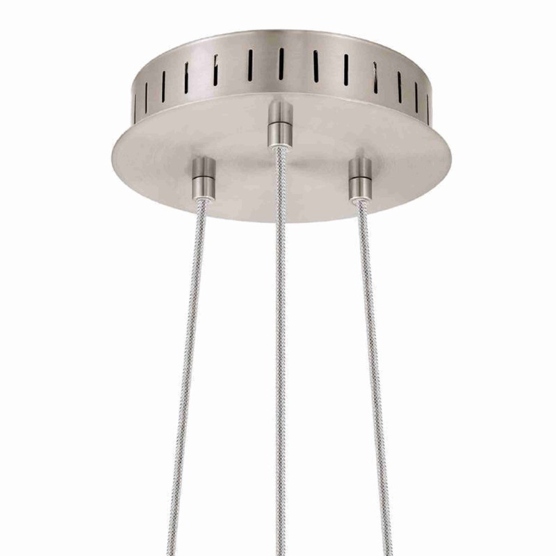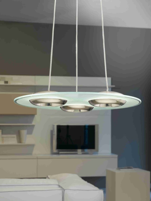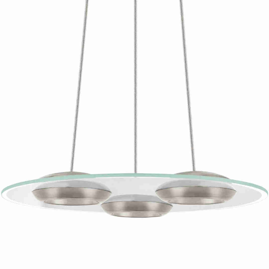 Part of the Bootes range this Eglo pendant has a white and clear satinated glass panel with in built LED heads. The 90811 is finished in satin nickel and is dimmable. This futuristic item uses an LED board meaning it is very long lasting and efficient.