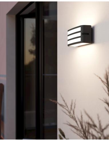 The CAMARDA exterior LED wall light has a rectangular cast aluminium body in anthracite with two horizontal struts. The product is suitable for outdoor use due to its IP54 protection against spray water and dust. With a classic simple design, the wall light blends seamlessly into any outdoor space, whether at the entrance to the house or on the terrace or balcony. The light has an E27 lamp holder and can be combined with almost any E27 lightbulb.