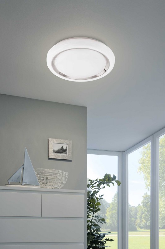 Eglo Lighting Capasso- C LED flush ceiling fitting features a circular frame in white finish with acrylic light diffuser and a polished chrome trim and is operated by a free app with your Smartphone, tablet or Smartwatch.