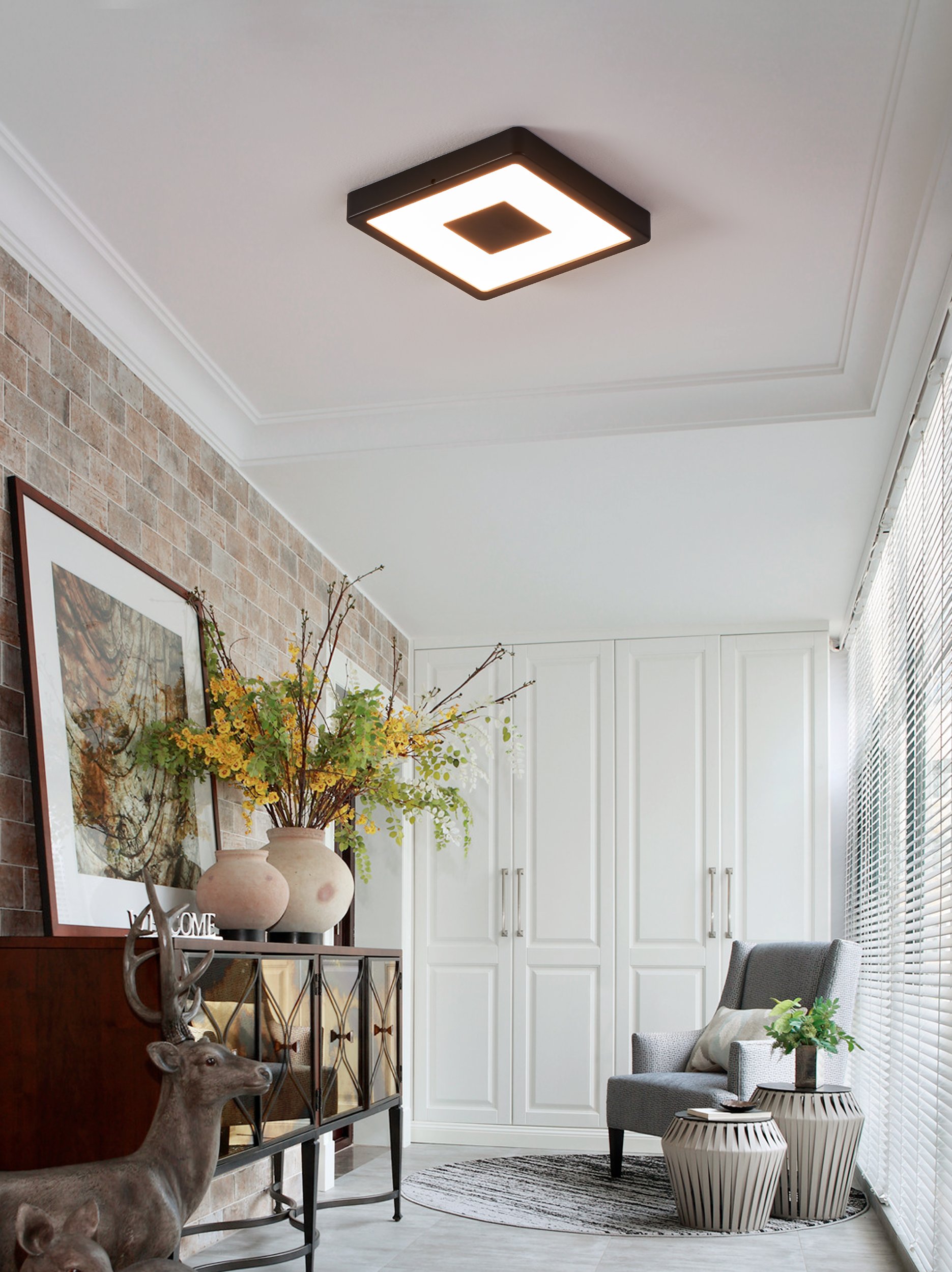 The IPHIAS 2 LED surface-mounted light has a square metal body in black and features a slimline design with a height of 30 mm. The integrated LEDs behind the white diffuser produce a pleasant warm white light. The minimalist design is complemented by a black square metal element in the middle of the light panel. The ceiling light is suitable for outdoor use due to its IP44 protection against spray water. The product has no visible screws on its housing, and the special ceiling bracket makes installation straightforward. The surface-mounted light’s classic design blends into any modern outdoor space.