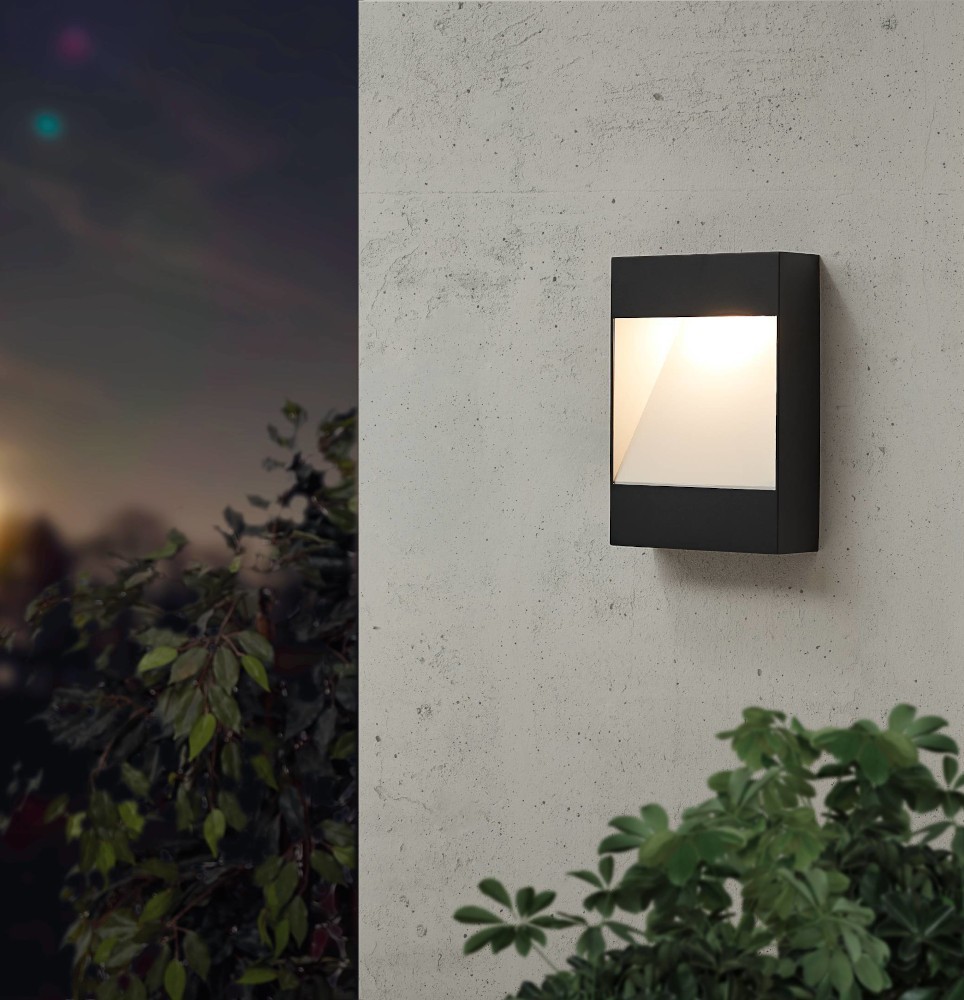 Eglo Lighting Manfria LED wall fitting features a square shaped back plate and frame in anthracite finish with a square cut out light source in white finish. This simple design which provides bright warm white LED and is perfect for modern or contemporary outdoor settings, making this a perfect choice for illuminating your garden at night.IP44 rated for outdoor.