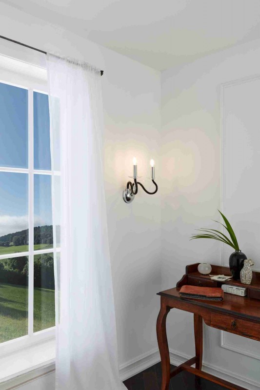 39128 Meduno wall light. This light fitting is made from steel with a chrome finish. It has a black glass shade(s).
