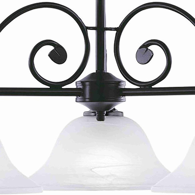 This is an Eglo product, item code 91005. This 3 light traditional ceiling pendant comes in a black finish complete with alabaster white glass shades.