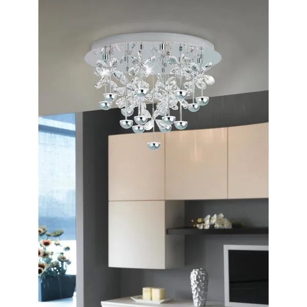 This is an Eglo product, the item code for this product is 39246. This is a stunning LED semi flush ceiling light from the Pianopoli range which is part of the Stars of Light collection. This fitting has a polished chrome finish with crystal glass pieces creating an elegant and contemporary look.