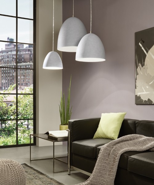 Simplistic in style this modern design ceiling pendant will match any decor within your home, with the contemporary steel grey shade which adds a stylish touch and look great grouped together as shown in the image.
