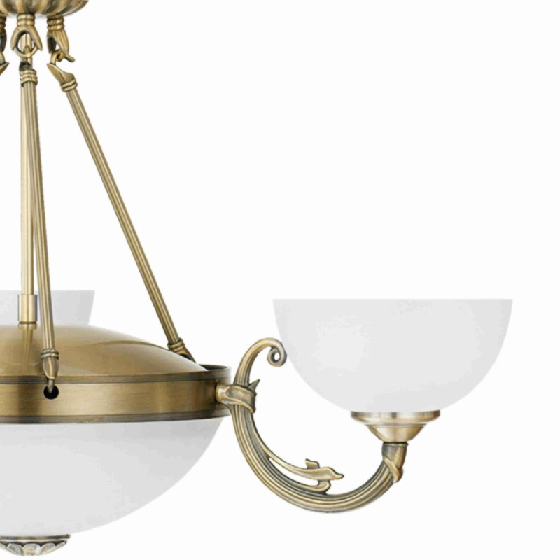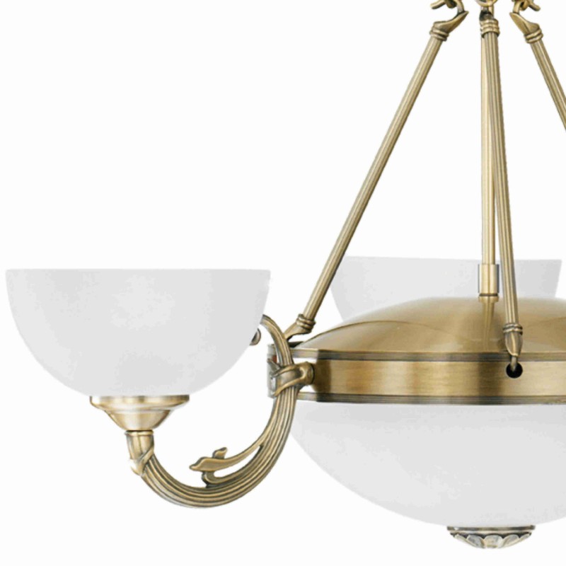 Eglo Lighting Savoy 5 light ceiling fitting features a solid cast metal frame with a bronze finish, decorative chain and holding a central white satinated glass shade and 3 small up lighter shades.