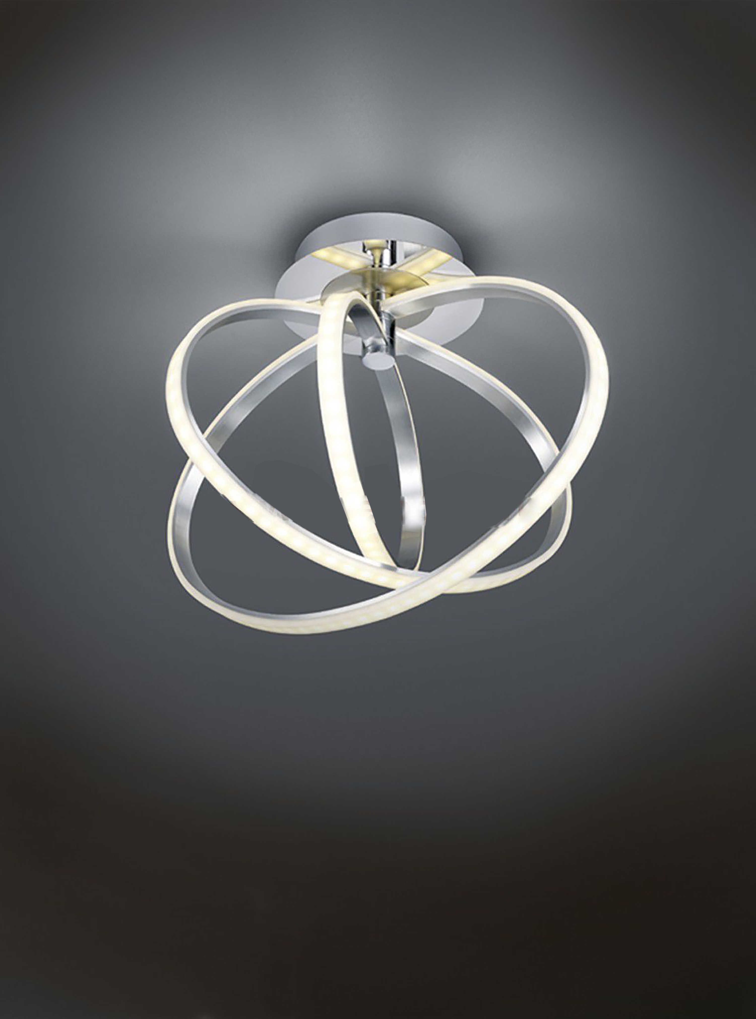 Eglo Lighting Selvina 3 light LED semi flush ceiling fitting features a circular design ceiling plate with 3 entwined rings in polished chrome finish with white acrylic lights diffusers.