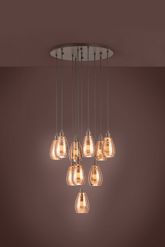 39509 Siracusa 10 Light Pendant Light Brown Glass Vaporized