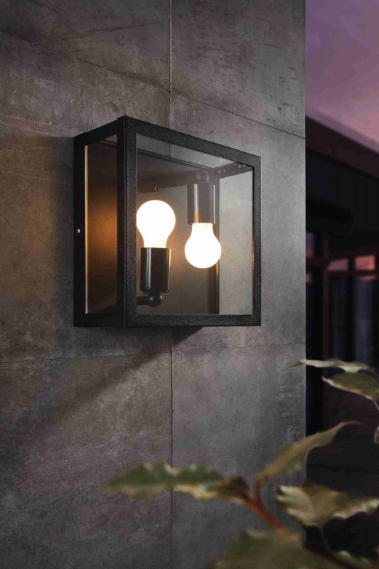 The Alamonte is a square ceiling light featuring clear glass panels framed in black aluminium. The clear glass makes the two globes a feature in this fitting. The globes are not included but be sure to buy a decorative globe to compliment the fitting. This light is best used on the ceiling in an alfresco area or porch, however it could also compliment an industrial interior design, it is not limited to outside.
