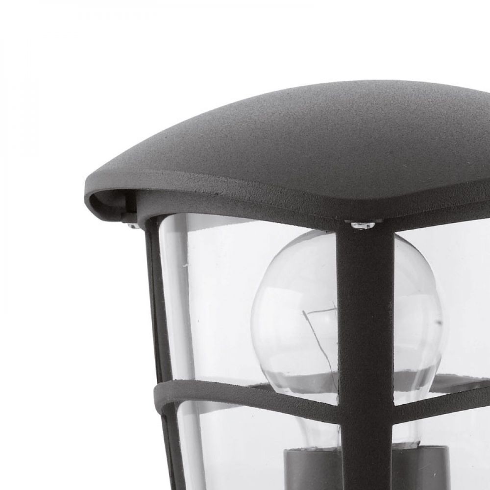 Eglo Lighting Aloria single light outdoor post light features a circular base and tapered stem holding a lantern style lamp head in black finish and clear acrylic panels.This stylish bollard light is modern in design and respectful to traditional style but with a modern twist, therefore suiting any style of house.