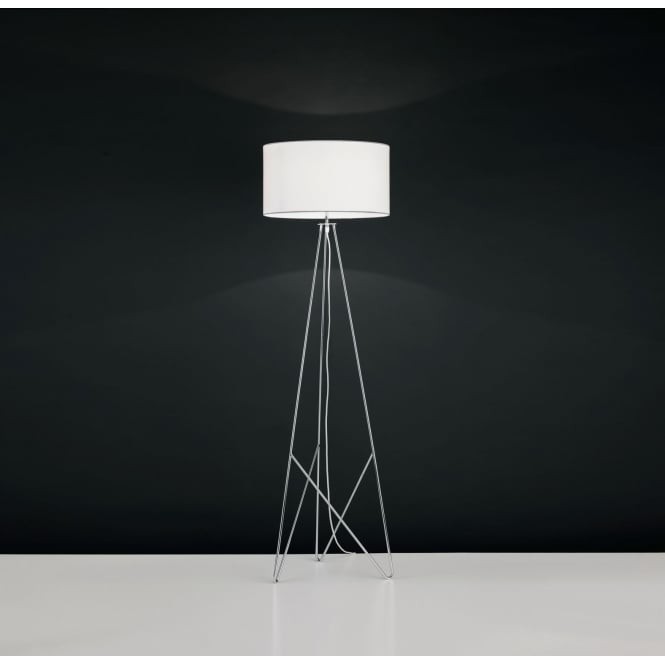 Modern floor lamp with stylish design from series Camporale, made of brass colour metal base and arm with white colour textile shade. Lamp in modern style, which will perform with a quality light and charm your dining room, living room, hotel or restaurant.