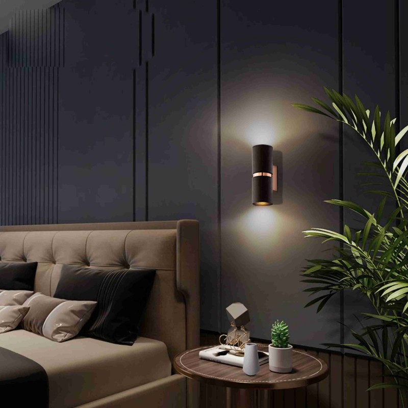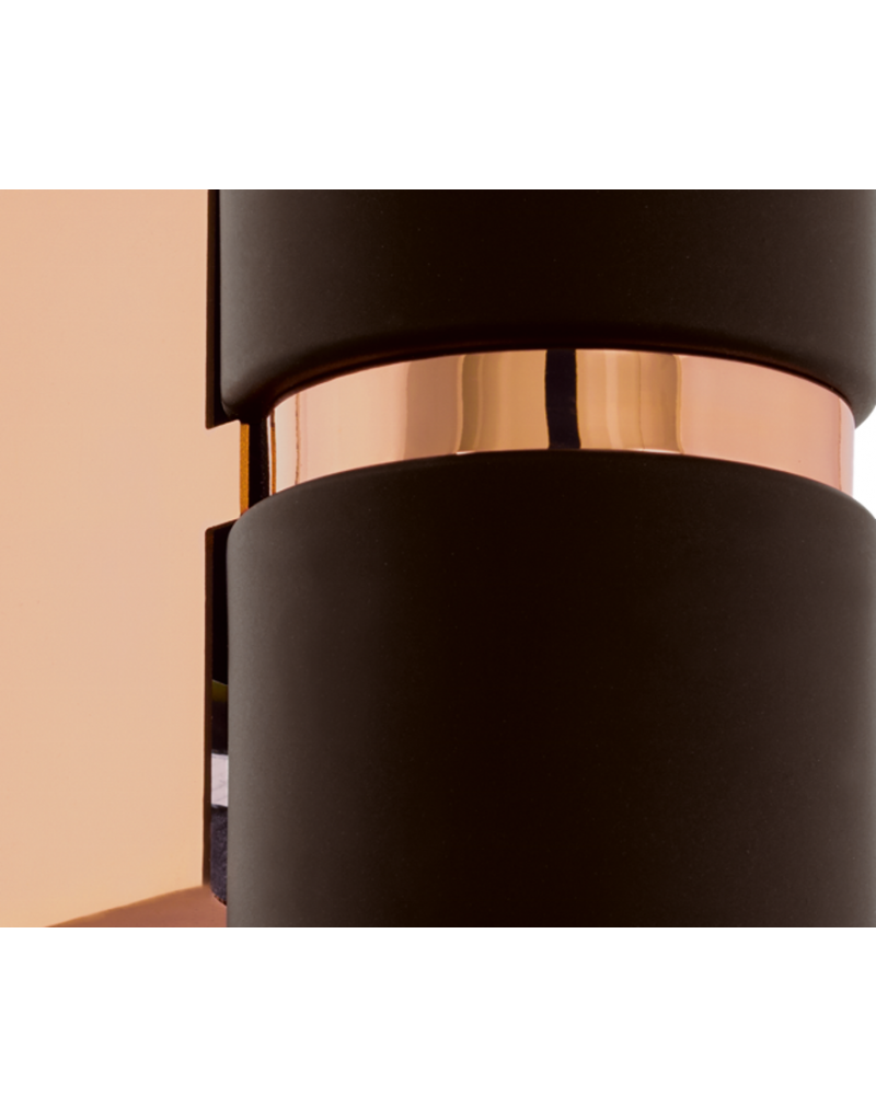 Eglo Lighting Passa 2 light wall fitting features a rectangular back plate with cylinder frame in brown and copper finish providing up and downward illumination.