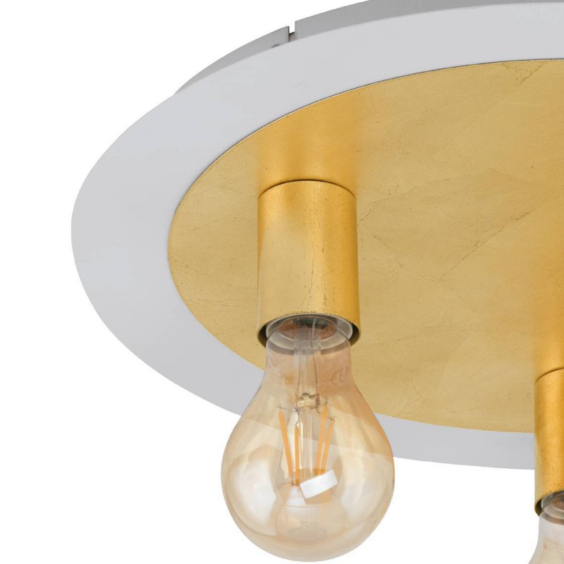 Eglo Lighting Passano 1 light semi flush ceiling fitting features a circular back plate in gold finish with white edging, holding 3 lamp holders with vintage filament style lamps.This unusual design will create an interesting lighting style , the combination of gold and white with the vintage filament lamp completes the look, making this perfect for both modern or contemporary decors. Especially suitable for rooms with low ceilings.