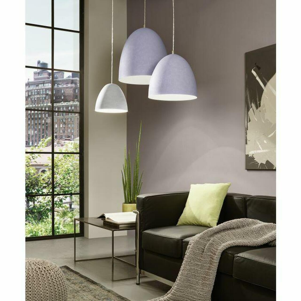 Simplistic in style this modern design ceiling pendant will match any decor within your home, with the contemporary steel grey shade which adds a stylish touch and look great grouped together as shown in the image.